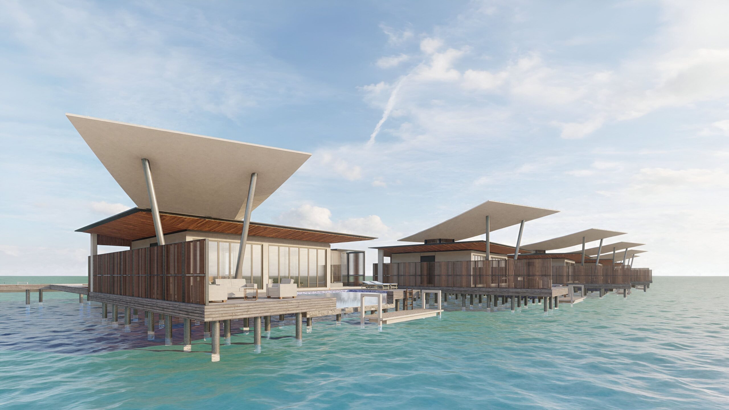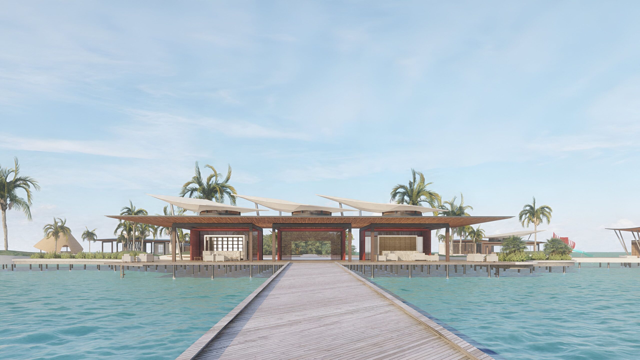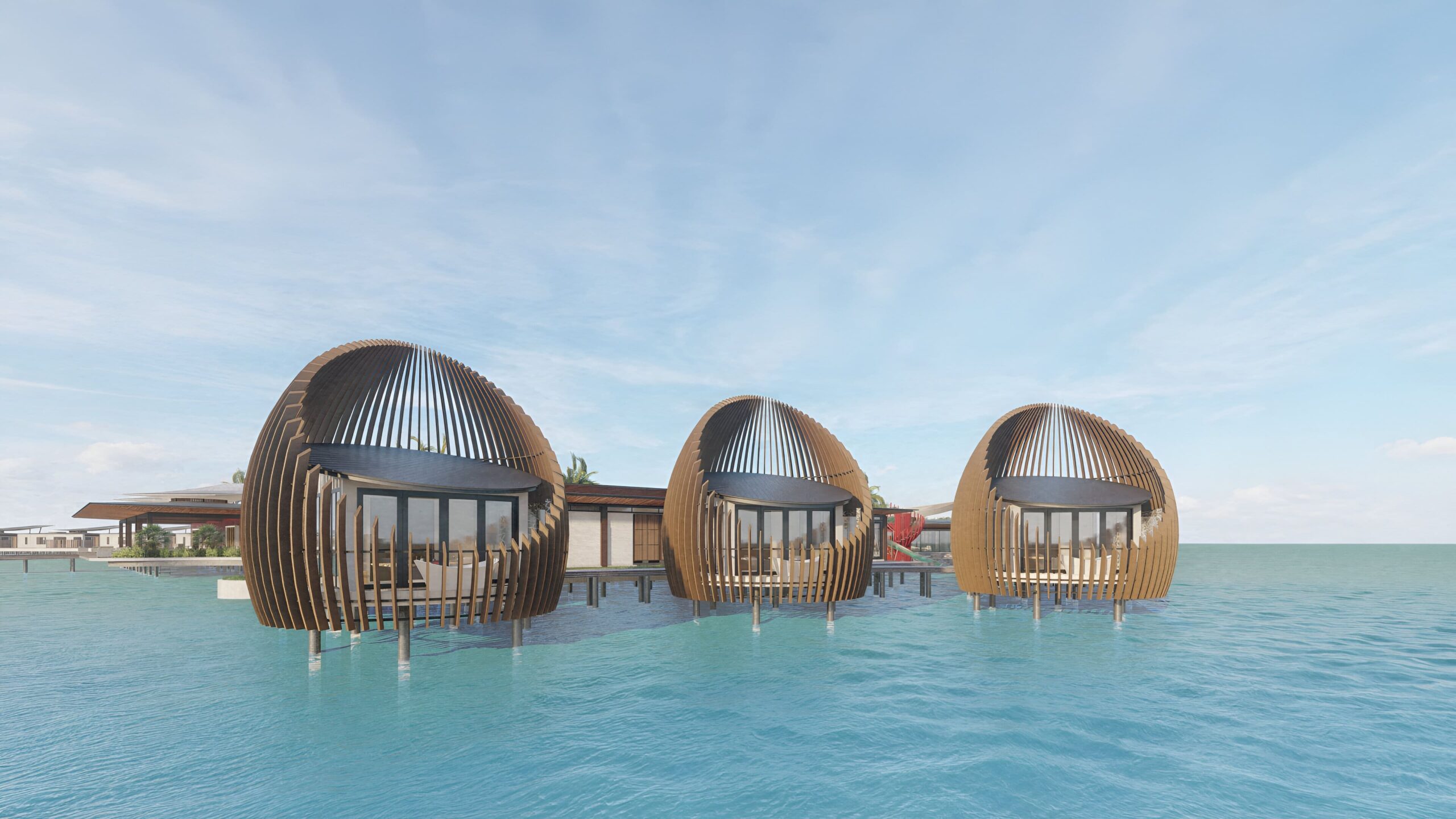 The project is an extension of the original small but exclusive Coco Prive Private Resort located on the small island. It is envisioned to be a full fledged luxurious resort but with only a small island, the resort grew over water as floating and or stilted structures, minimising unnecessary adverse environmental impact of land reclamation for more land. The design has 8 water villas and a series of independent islands hosting various exclusive guest amenities. A series of three huts welcomes visitors form the arrival jetty, toped with three feature sailing roofs that takes the direction of the prevailing wind. The theme of nautical lifestyle is carried throughout the resort, with themed interior design and sea-focused experiential design, creating once in a lifetime luxury island experience.
