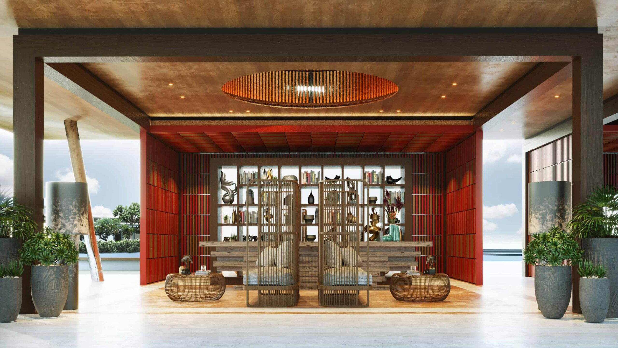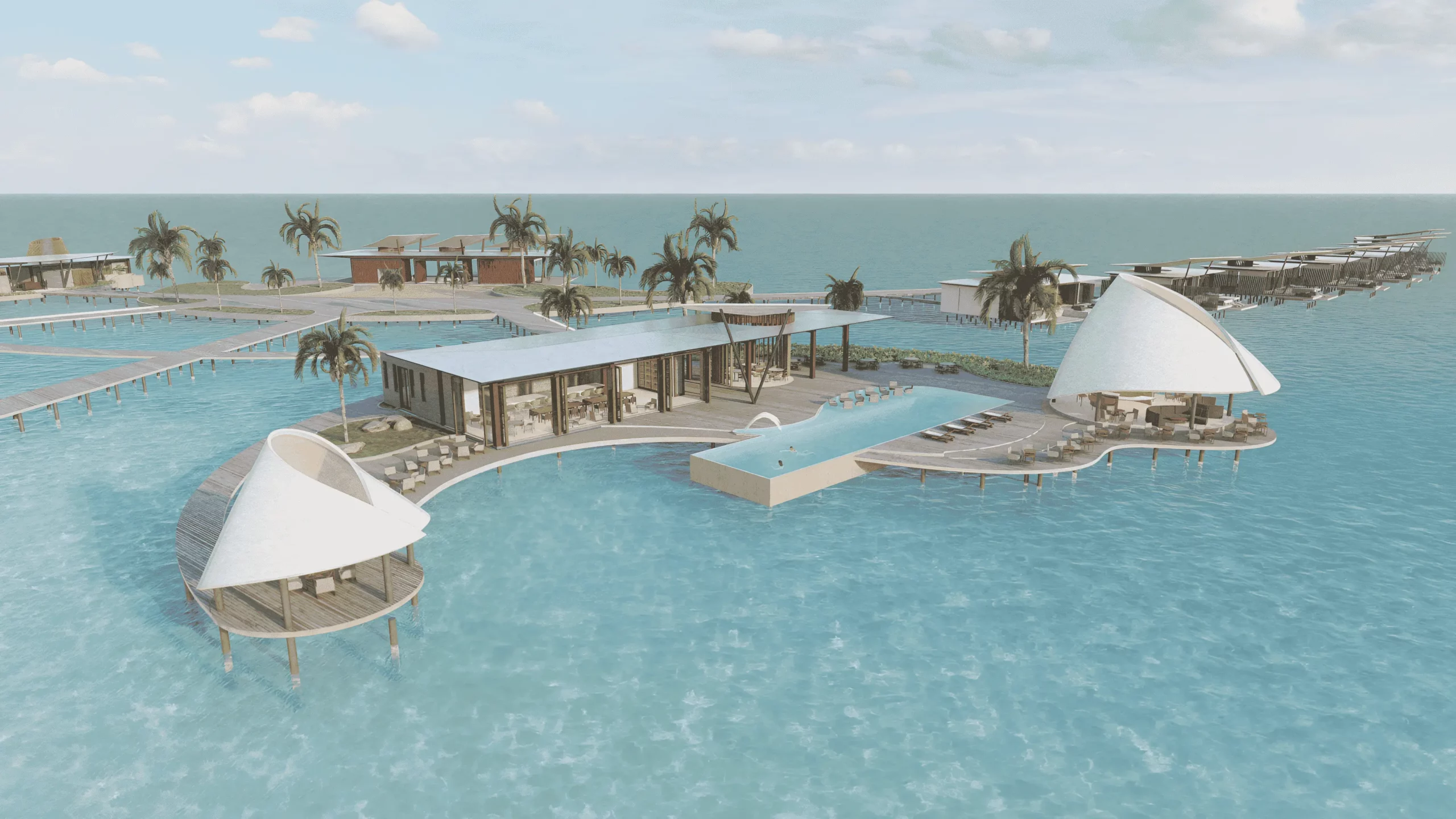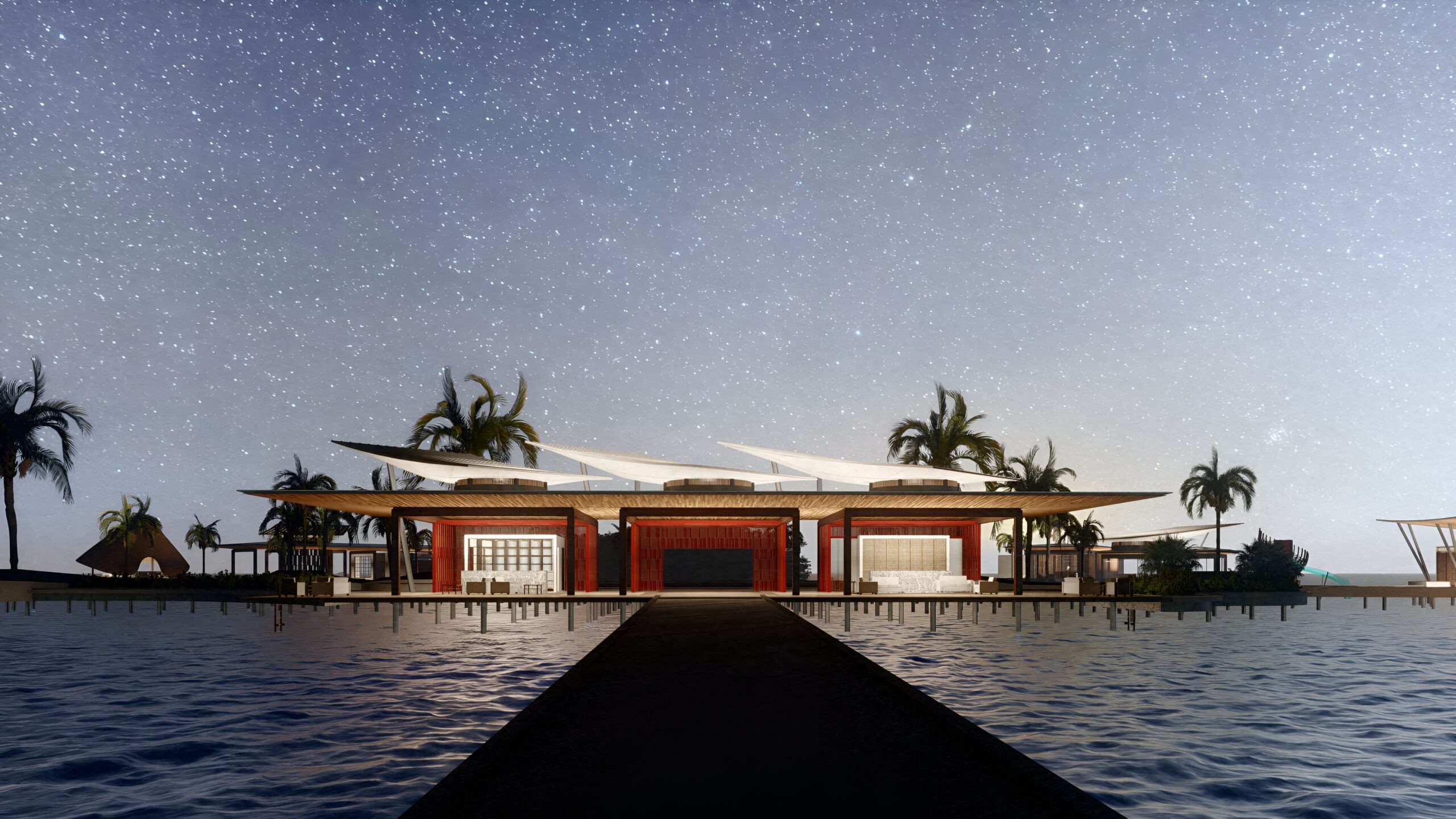 The project is an extension of the original small but exclusive Coco Prive Private Resort located on the small island. It is envisioned to be a full fledged luxurious resort but with only a small island, the resort grew over water as floating and or stilted structures, minimising unnecessary adverse environmental impact of land reclamation for more land. The design has 8 water villas and a series of independent islands hosting various exclusive guest amenities. A series of three huts welcomes visitors form the arrival jetty, toped with three feature sailing roofs that takes the direction of the prevailing wind. The theme of nautical lifestyle is carried throughout the resort, with themed interior design and sea-focused experiential design, creating once in a lifetime luxury island experience.
