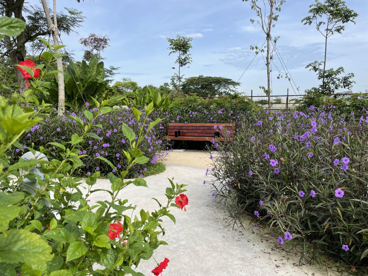 The park was conceived as a green counter to the adjacent Woodlands Health Cluster and is likely the largest therapeutic garden in Singapore. It is shaped and detailed with care and concerns for the users, intended as a naturalistic forest park for the people, who are largely patients from the adjacent healthcare facilities. The park spaces are seamlessly connected via a continuously sloped footpath that allows universal accessibility throughout. The specially tailored design caters to both patients and the public who share the park. The coherence in design language permeates the entire site. The park is open, and its unblocked vistas complement a clear state of mind for visitors. Colours, textures, materials and planting choices are selected with care to reinforce the process of healing through engagement with nature.